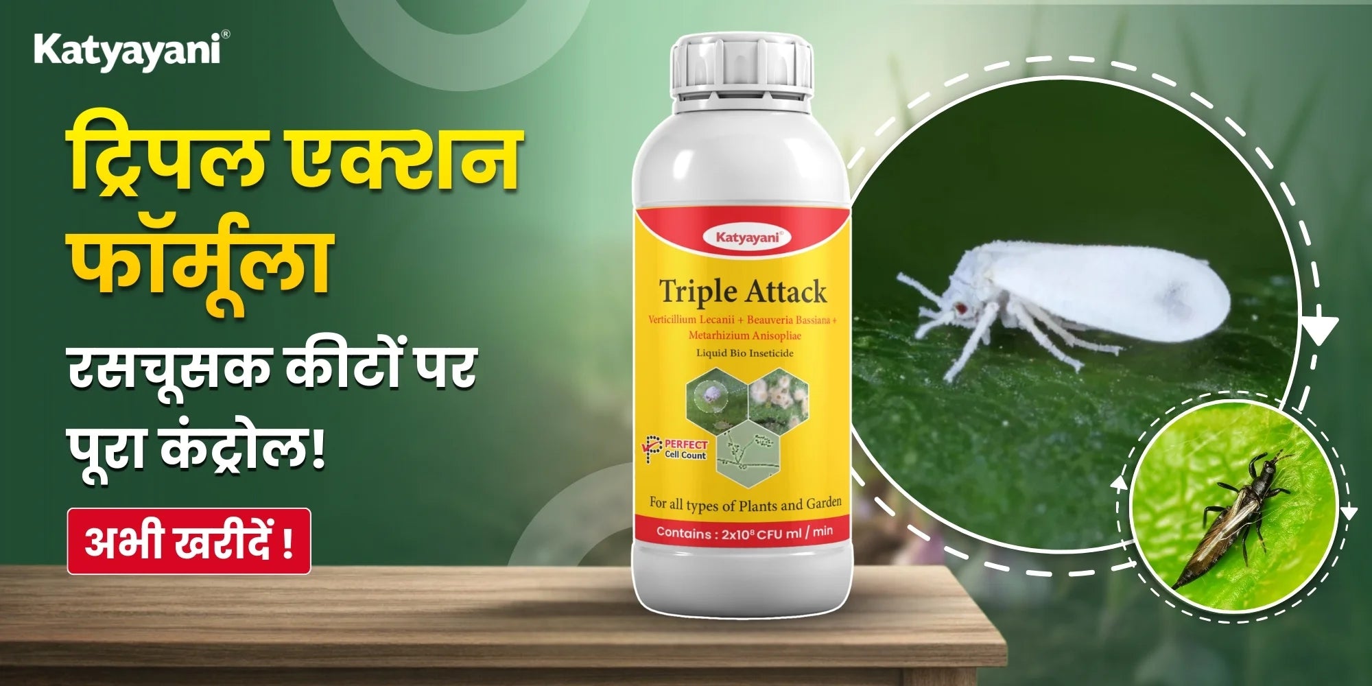 कात्यायनी ट्रिपल अटैक | वर्टिसिलियम लेकानी + ब्यूवेरिया बैसियाना + मेटारिज़ियम अनिसोप्लिया (तरल) | जैव कीटनाशक