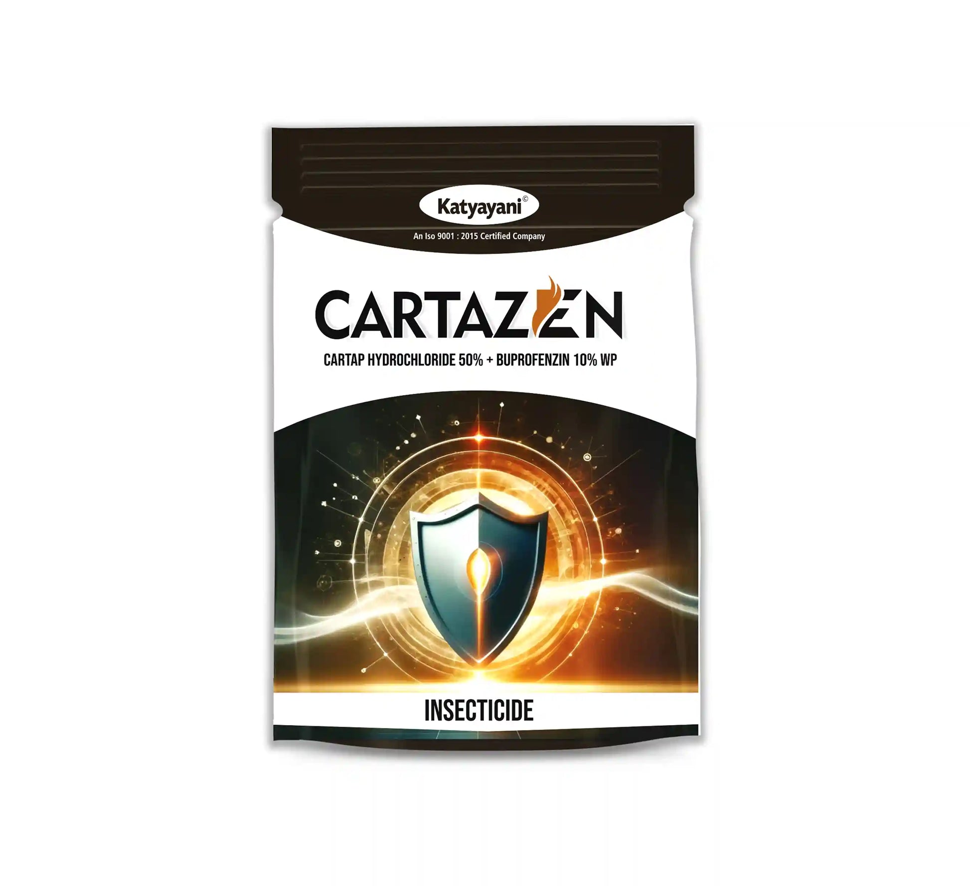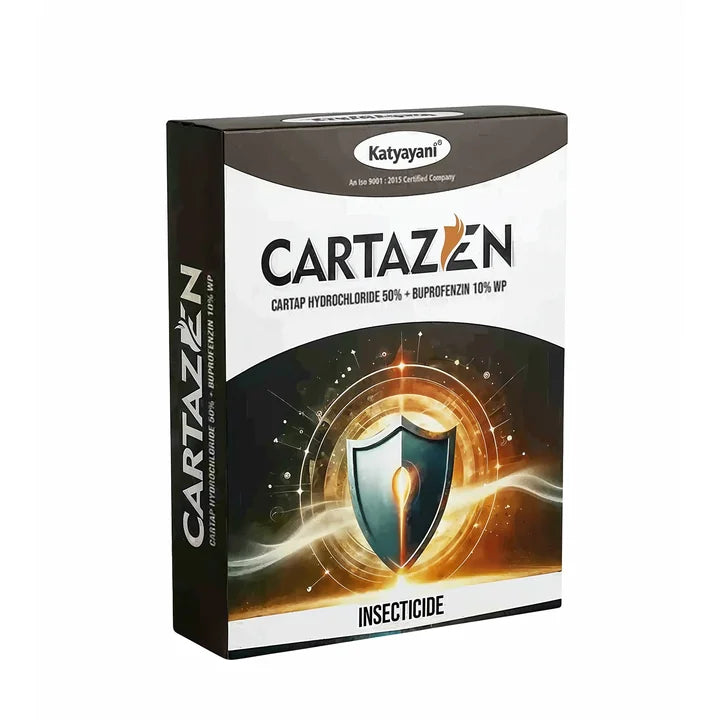 A. कात्यायनी कार्टाज़ेन एक शक्तिशाली कीटनाशक फॉर्मूलेशन है जिसमें 50% Cartap Hydrochloride और 10% Buprofezin शामिल हैं। यह दोहरी क्रिया द्वारा कीट नियंत्रण प्रदान करता है, जिसमें Cartap Hydrochloride की तेज़ प्रणालीगत क्रिया और Buprofezin का दीर्घकालिक अवशिष्ट प्रभाव शामिल है।