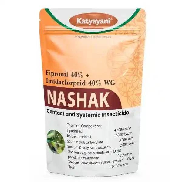 ನಾಶಕ್ ಫಿಪ್ರೊನಿಲ್ 40% + ಇಮಿಡಾಕ್ಲೋಪ್ರಿಡ್ 40% ದ್ವಿ-ಕ್ರಿಯೆಯ ಕೀಟನಾಶಕ 100 ಜಿಎಂ ಗಿಡಹೇನುಗಳು, ಬಿಳಿ ನೊಣಗಳು 50 ಗ್ರಾಂ / ಎಕರೆ